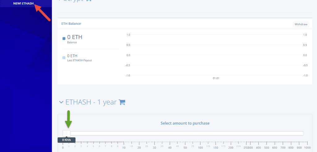 من قائمة Buy HashRate إختر شراء عقد التعدين في الإثريوم .